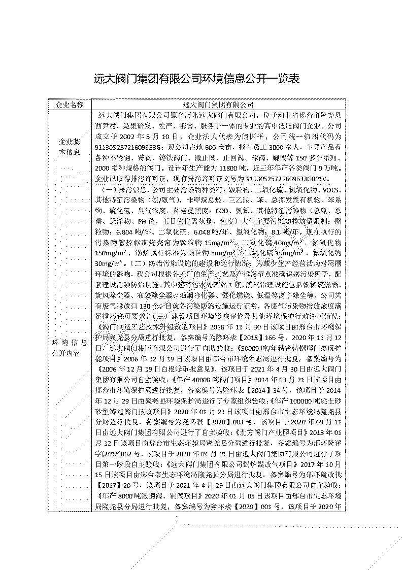 2022-2023年度遠(yuǎn)大閥門集團(tuán)有限公司環(huán)境信息公示